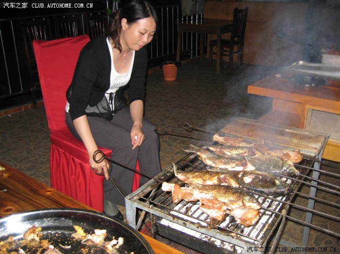 活动进行中,一旁的姐姐在帮我们默默地准备烧烤美味。晚走的车友都有尝上一口,人多,不容易啊