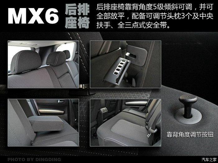 后排空间明显不足,即使男士坐进去有明显压迫感,幸好有角度5级可以调节,放倒底还是可以接受的。