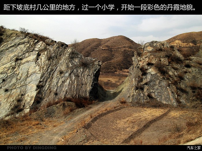 一路都是水泥路面,到远远望见遗址所在地黄阳山的时候,路况开始变化,两边都是沙化的地表,就道路还好一点,是沙石混合路,这里真是罕有人迹,除了偶尔经过的几辆摩托车外,就只有我们这一辆车孤独的前行。