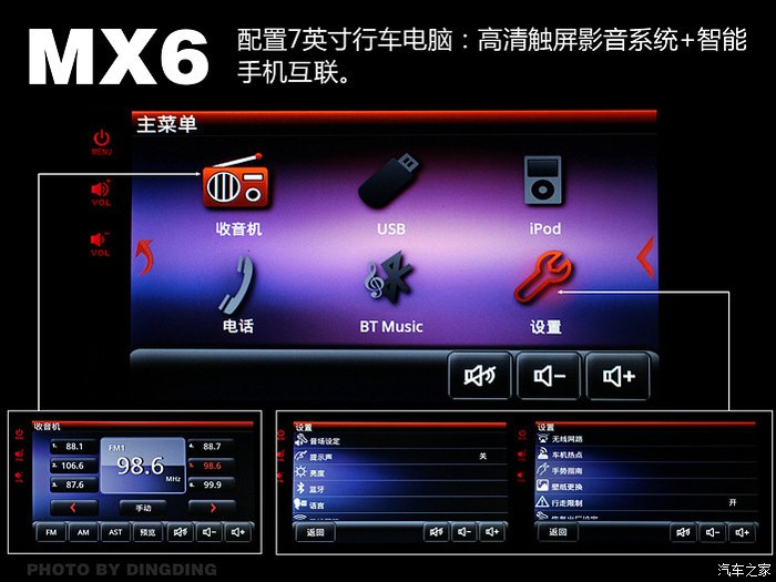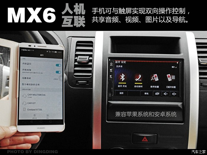 关于人机互联,在设置中,有好几项很实用的功能,我试用了蓝牙连接手机,音乐点播比较方便,同时在开通手机导航的情况下,看不到导航界面,只能听到导航声音。