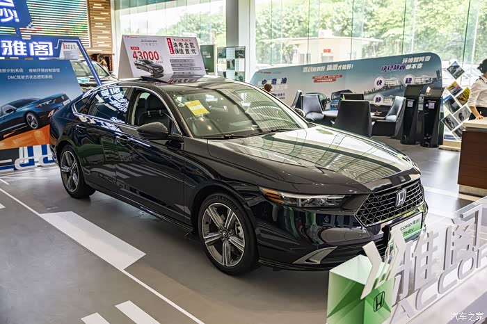 我们先来到本田的4S店,看看这台第十一代雅阁,从汽车之家的销量榜来看,雅阁的销量其实是不错的,月销大概1w多台,喜欢它的人还是挺多的,先看看外观,雅阁的前脸采用最新的家族式设计,六边形前进气格栅,与两侧修长的大灯相接,看起来车头更加宽大扁平