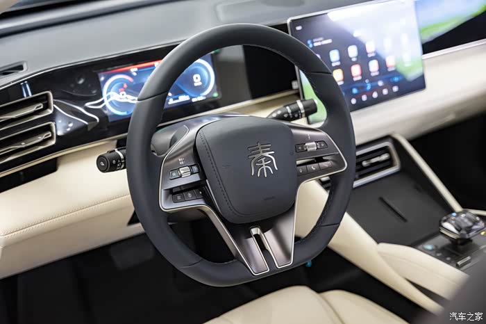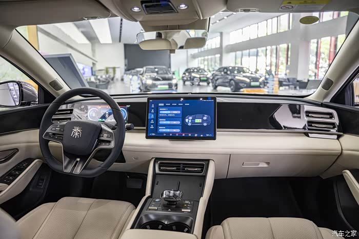 秦L的内饰设计整体比较简洁有科技感,采用内嵌式大尺寸液晶仪表和15.6英寸可旋转中控屏,看上去更加的大气,说真的,谁能相信这是一台不到10w级别的车内饰呢