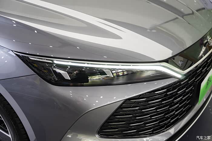 比亚迪秦L采用“新国潮龙颜美学”, 大灯狭长锐利,发光的日行灯就像两根“龙须”,下方散热格栅尺寸非常大,整体看上去更加有气场