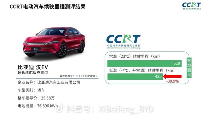 汉ev在冬季低温测试位居第一