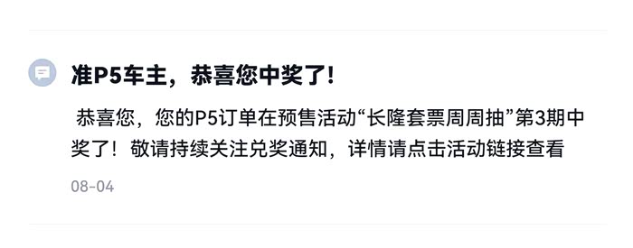 经过将近两个月的等待,终于在25号那天提到了心心念念的P5,今天就来分享一下整个提车的过程,本人2021年四月底九十九元意向金盲订,中间因为朋友介绍更换了门店,所以99元退订,七月底五千意向金,一直到十一过后去试驾完转定,十月中旬签订合同,这就开始了漫长的等待过程 。中间也加了好几个车友圈每天都在和车友们讨论很多P5的消息。还在意向金抽奖的活动中抽中了长隆套票还有盲定的积分。【这运气也是没谁了,哈哈哈哈哈哈....】