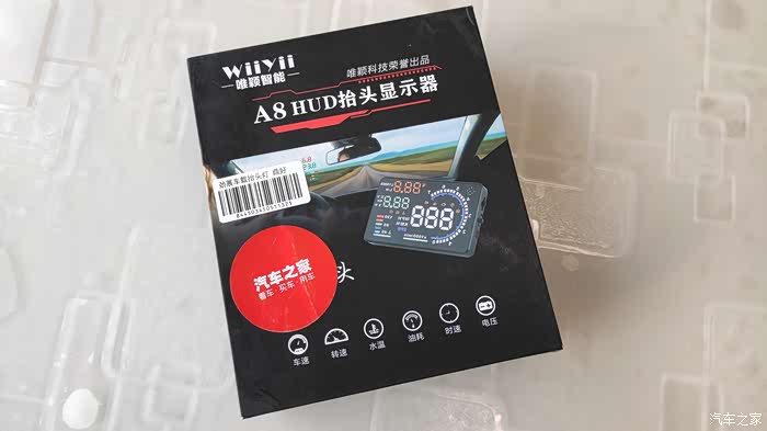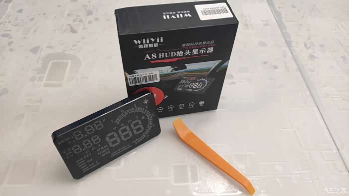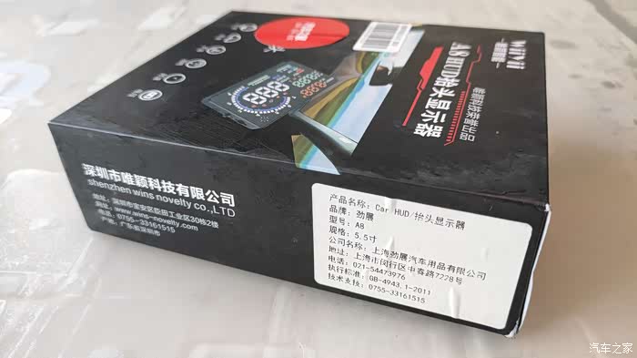刚说完最小巧的,我们再来看看身材最大的一款,唯颖智能A8抬头显示的外形尺寸为12.5*7.5*1.3。