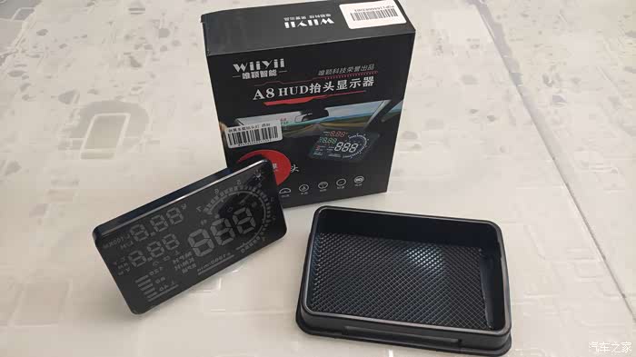 唯颖智能A8抬头显示的上车效果,配备有硅胶软性材质的防滑盒。