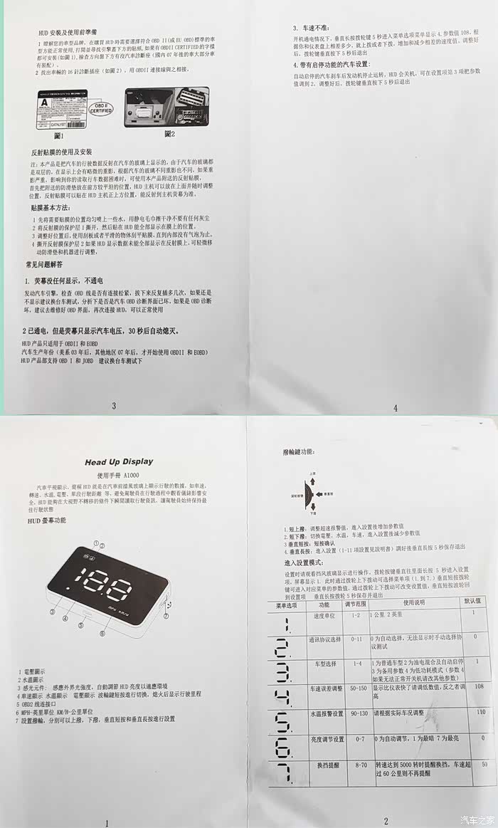 本次横评的三款HUD抬头显示虽然品牌不同,外形不同,但通过对说明书的了解,在功能和设置参数的操作方法却是相同的,都是通过可以左右转动和垂直下按的滚轮来操作。只不过进入设置界面以后,每个数字所代表的对应功能区域有所不同罢了。