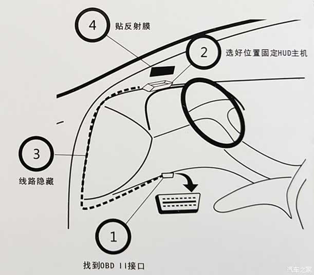 HUD抬头显示使用车载OBD数据接口提供数据读取,然后通过显示器投***风挡玻璃上,驾驶员在驾驶时只需稍加兼顾即可了解车辆信息,所以HUD抬头显示的主要配件有OBD数据线和显示器。又因为目前多数风档玻璃为双层夹胶设计,数据通过显示器投射的时候会出现重影现象,所以还会随显示器主机配置防重影的投射反光膜,即能保持通光率不影响驾驶,又可以消除重影。