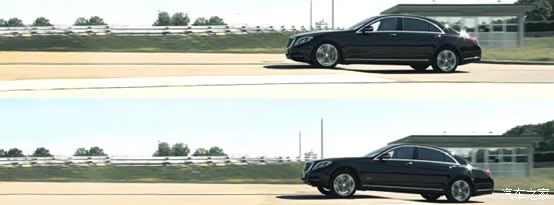 魔毯是个代称,指车开起来像魔毯一样,明明地面是起伏的,车内的人却依然平稳如一,如果拿魔毯可以认为是空气悬架的进化版,之前岚图官方做过测试,拥有空气悬架的车,在过小颠簸路面或者减速带时,车内一杯水溢出的量要比无空气悬架的车少一大半;那么如果魔毯技术调教的好,同样的路面,车子甚至可以做到滴水不撒,下图展示了有魔毯(上)与传统悬挂的过坡车身姿态,看的就很明显了。