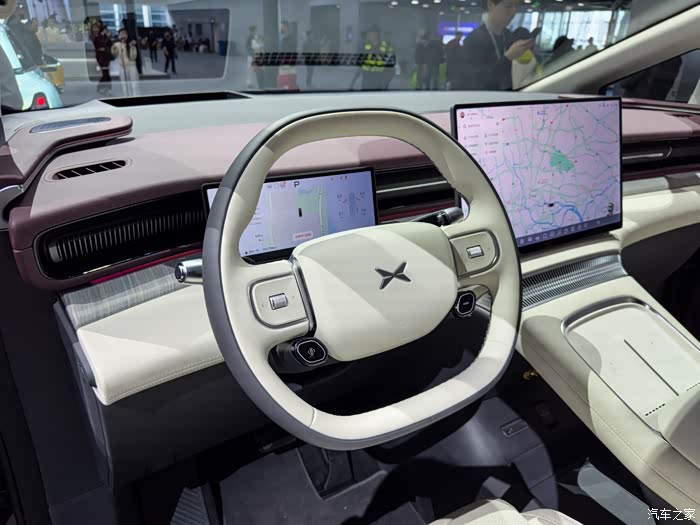 内饰设计我觉得小鹏X9更加简洁有科技感,浅色皮革搭配少量木纹饰板,贯穿式的空调出风口凸显科技感