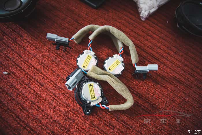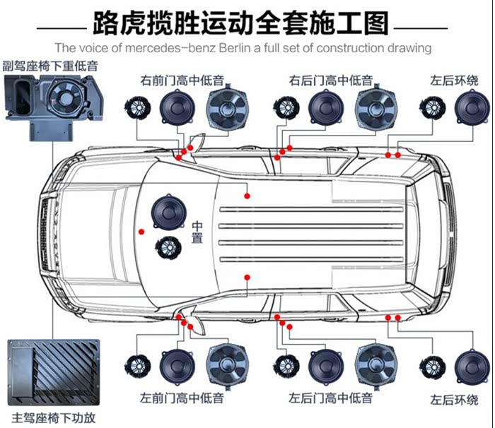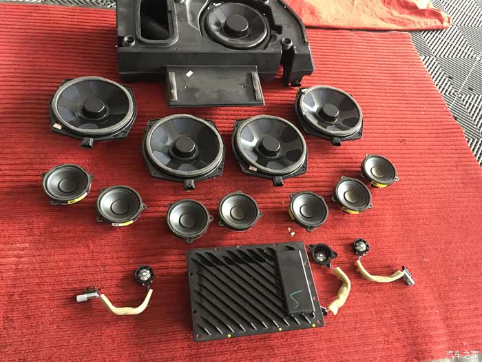 2.四车门各2个扬声器高音,次低音扬声器各一个
