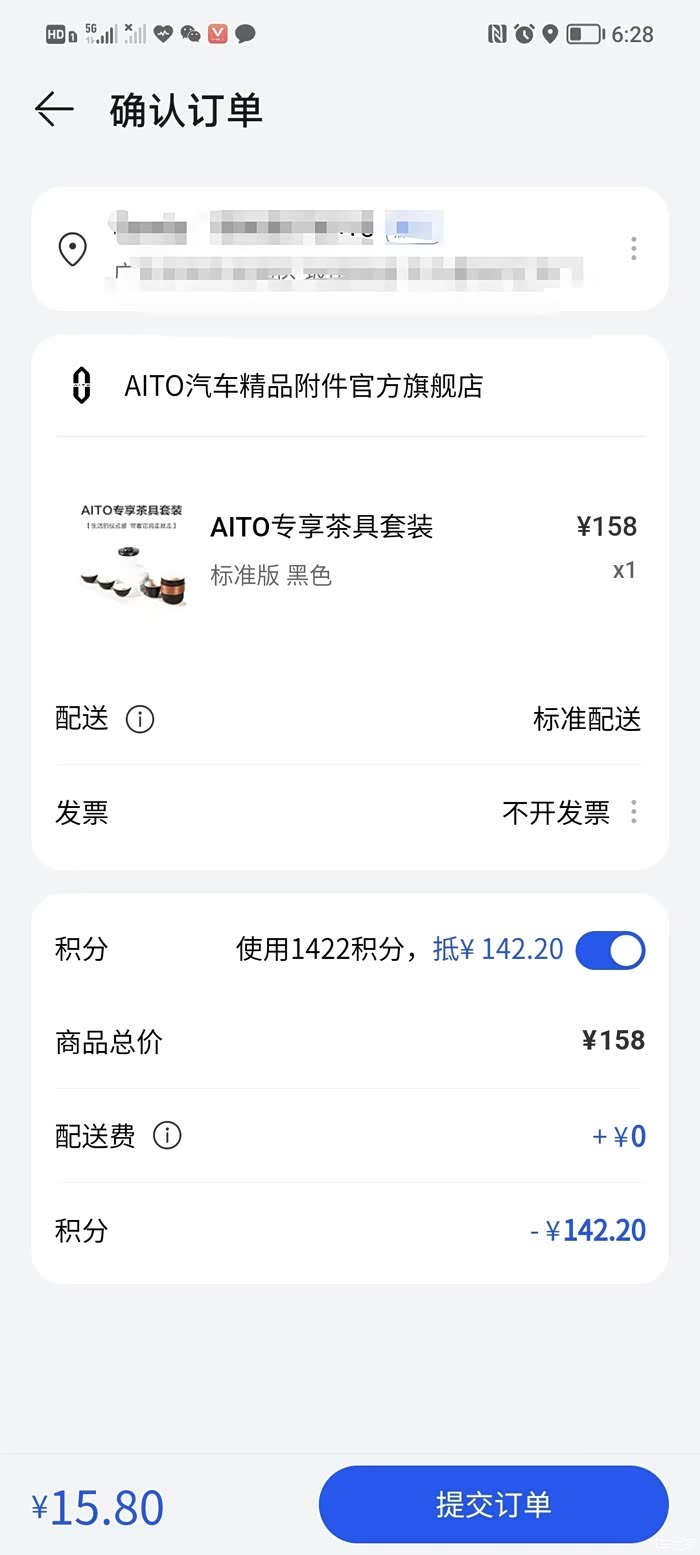 AITO APP里的积分到账了,试了下10积分抵一块钱,有积分的车友可以去看看了,能买东西了