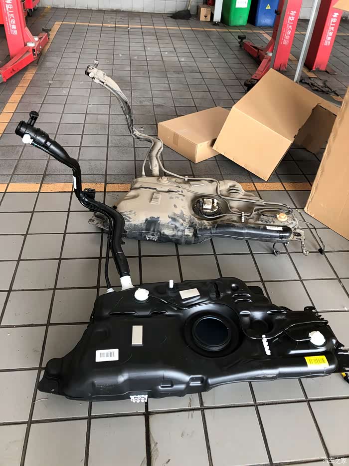 几个细节值得我说一下:第一,换油箱总成其实是不需要拆后排座椅的,直接把车升起来就能拆掉油箱总成。