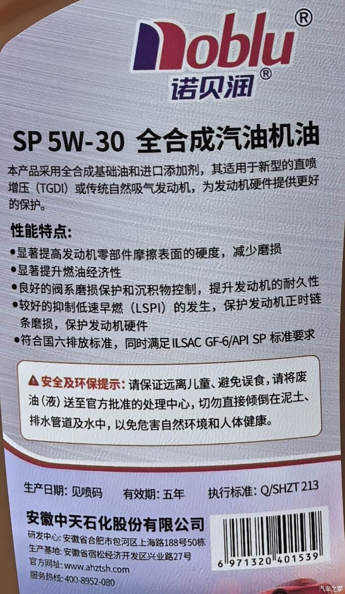大家好,本次检测一款国产小众机油,诺贝润5W-30 SP,这是一款GF-6认证的低粘度30油,一起看一下各项指标怎么样。