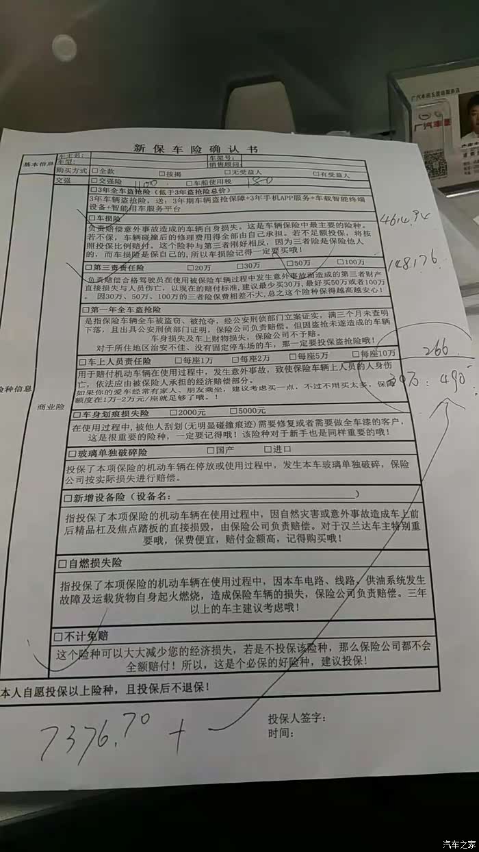 。也不计较了。下午1点过一点到店。因为G哥提前打了招呼简单的寒暄。让我们稍等片刻他去把车开过来。我的销售今天特别忙。早上交了3个新汉下午还要交2个。大体看了一下3公里、外观没毛病塑料膜都没有撕掉。之前提车攻略上面要看底盘、机油什么的一样没用上。马上刷卡办手续然后是买保险、拿合格证(提前请他把合格证准备好了的)。办临牌。下午5点半全部手续办理完毕。开车走人