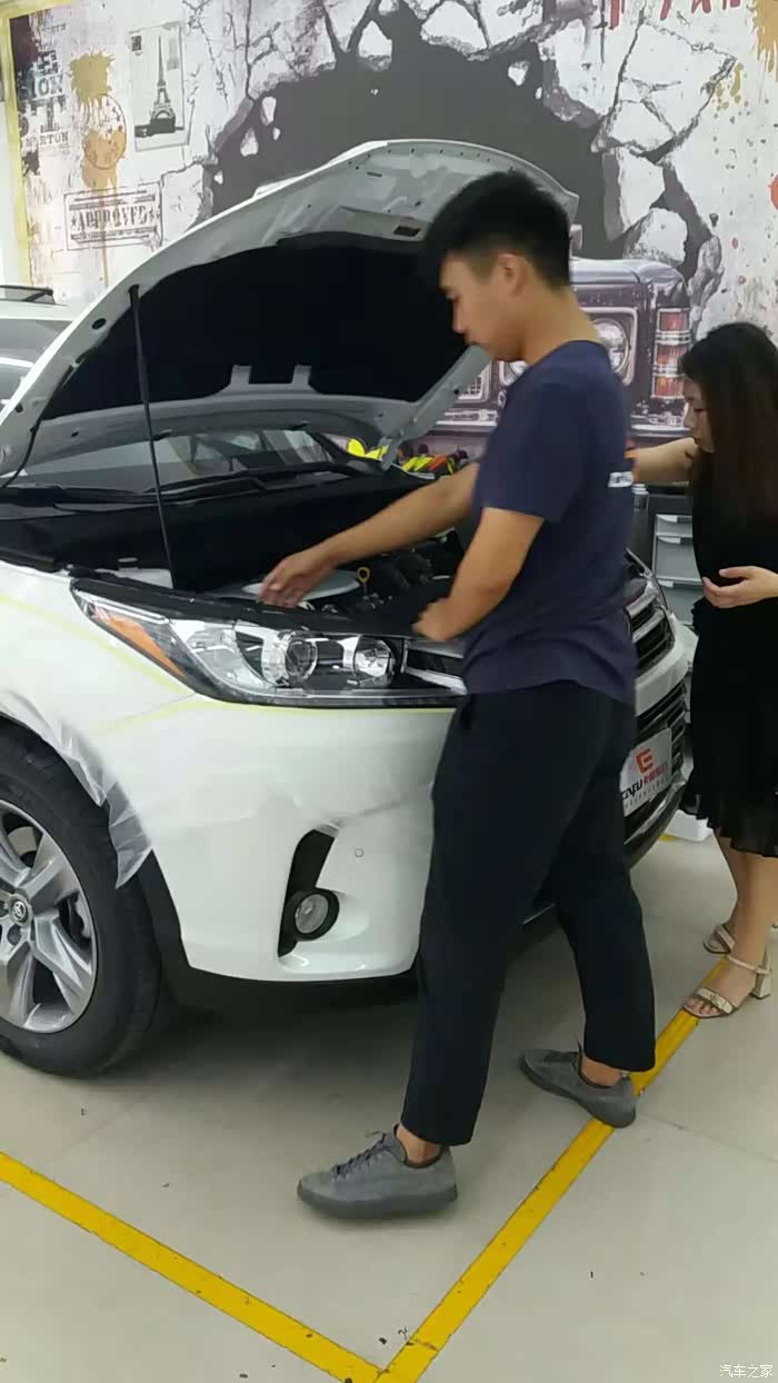 因为今天我要赶回云南所以在改灯的同时S老板已开着他的超级无敌炫酷的15款汉兰达带着他的工人来了,今天要改360全景、左右固定踏板、发动机护板、自动大灯、外加送了一道电吸门。我的车又要遭殃了。大坼!坼个稀巴烂。。