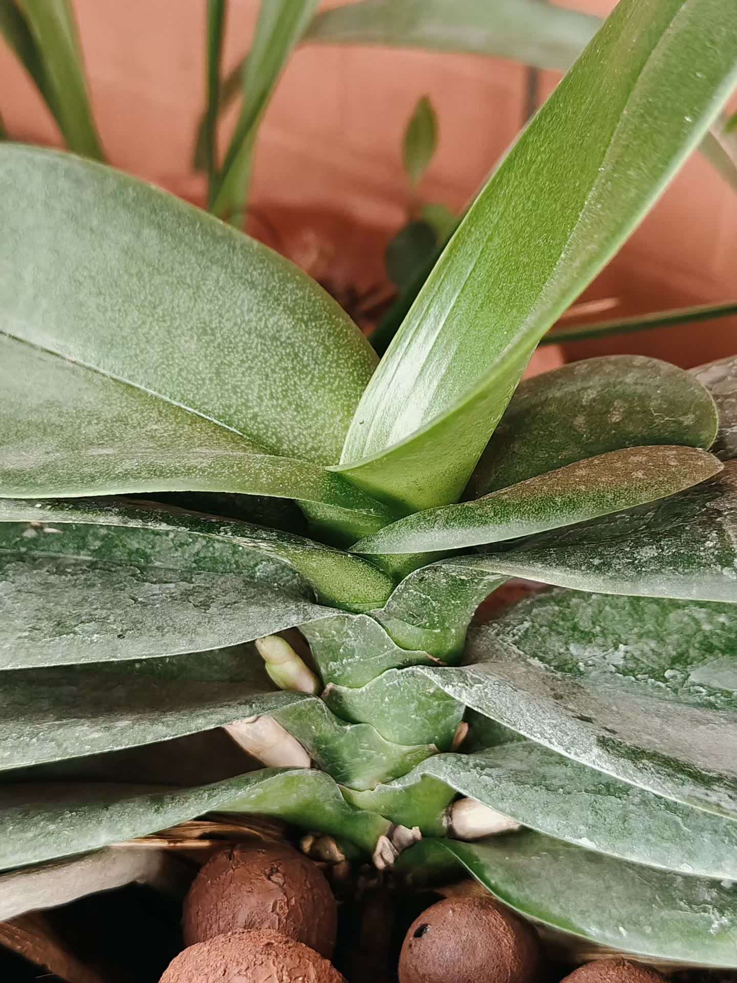 第二株的叶间,新的芽点正悄然萌发,似是在积蓄力量,等待一场绚烂的花事。第三株的根系洁白如玉,在陶粒的映衬下,尽显生机与灵动。