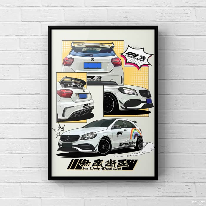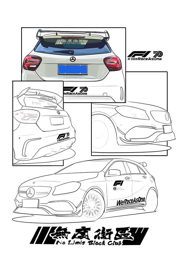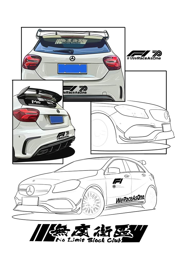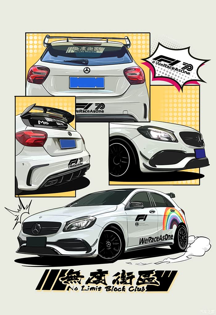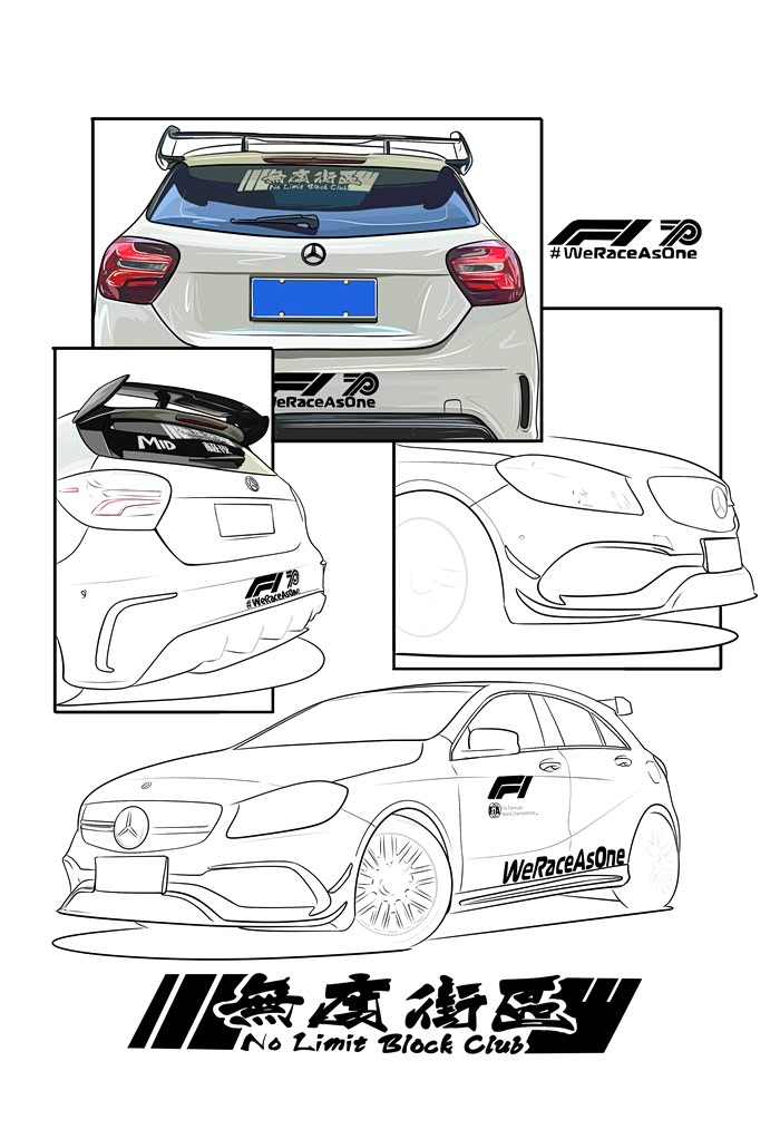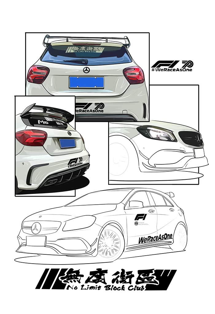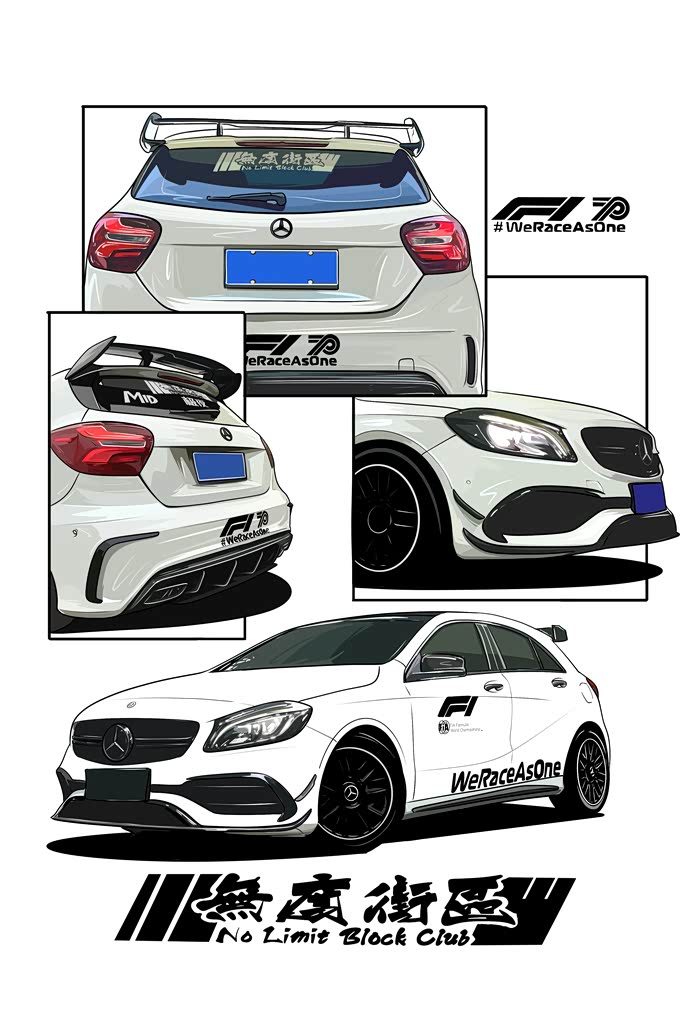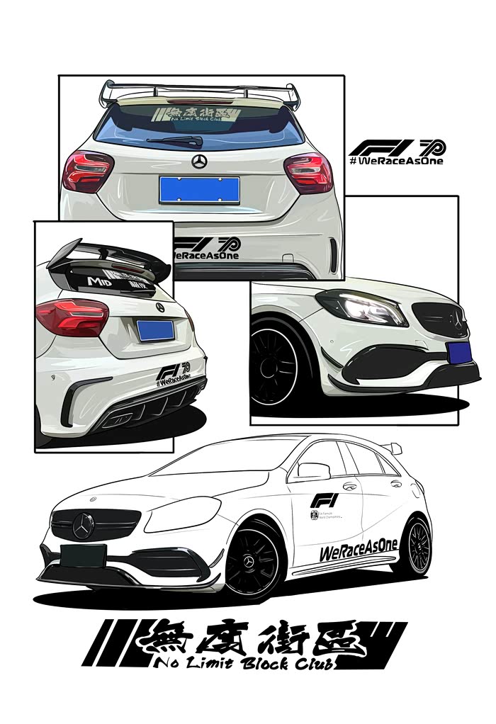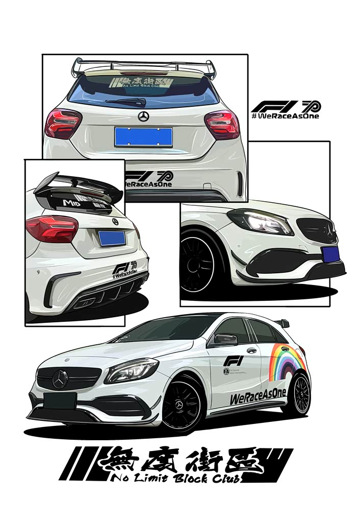 今天画的是一辆粉丝的车,改装了A45包围套件 车身F1彩虹安全车拉花