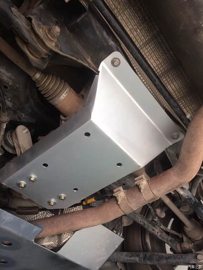 原车的发动机护板是铁的,铁板也很厚