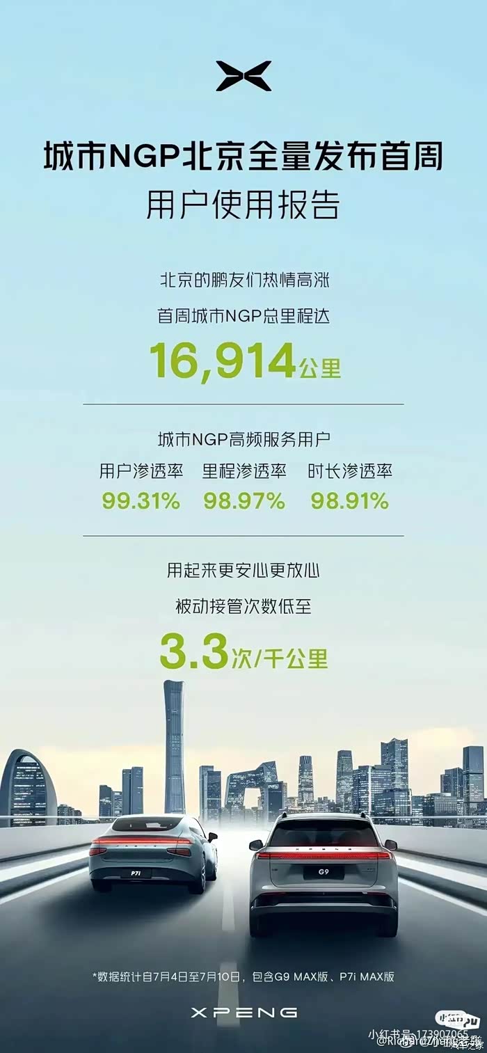 前几天小p更新了4.3.0,北京终于开通了城市ngp!我的小p ota之后智商暴增!感觉我又像换了新车!庆幸自己当初买了max版本真是太明智了!北京ngp真是太爽啦!我通勤距离超过半个五环,在五环上我基本不用我怎么开,小p开的又稳又好!可以自己识别限速,自动超车,自动下匝道!天天堵车的时候也不至于那么累,给小鹏大大的点赞!
