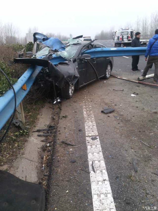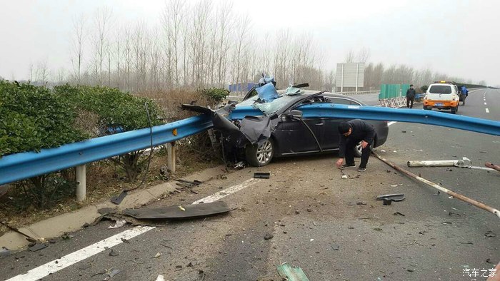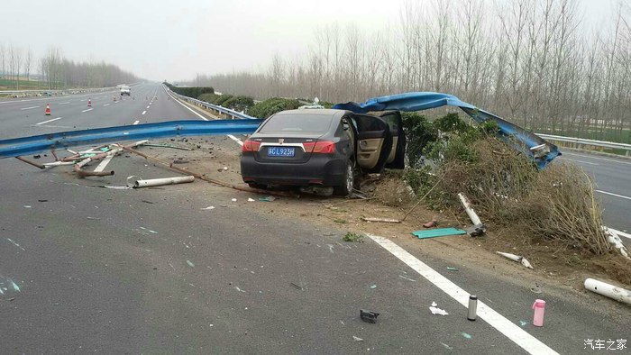 早上7点左右,在连霍高速上,我的车120码在没有任何制动下,甚至撞停了脚还在油门上,一头从左侧的活动护栏上撞上,左侧防护栏从正前方插入,冥冥中从左车前窗穿出,防护栏穿出大概有10多米长,右侧防护栏插入车前窗也席卷而来。