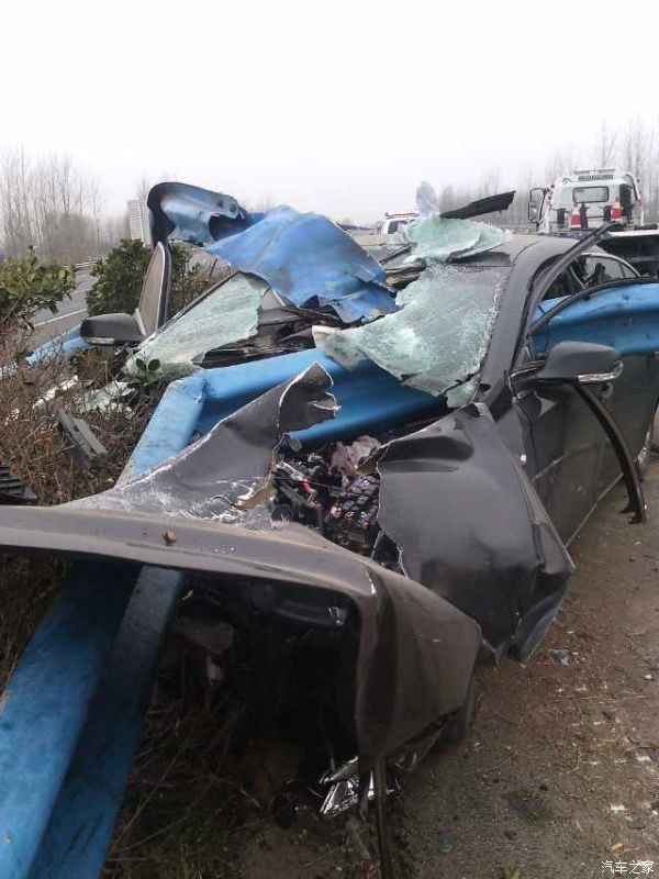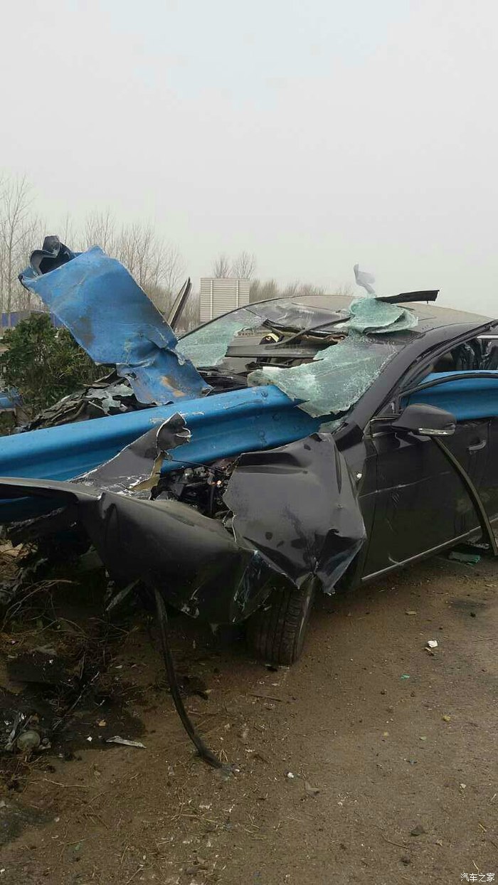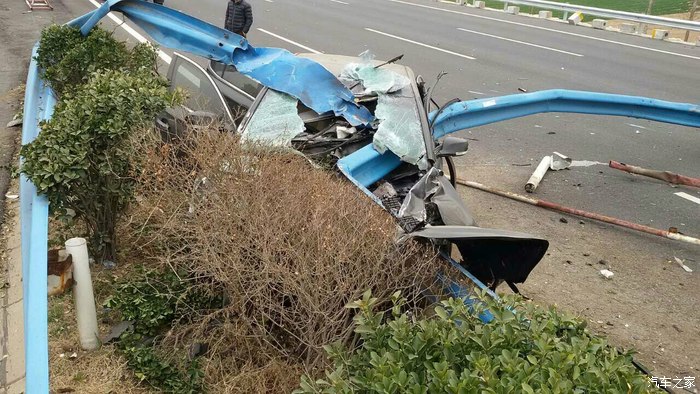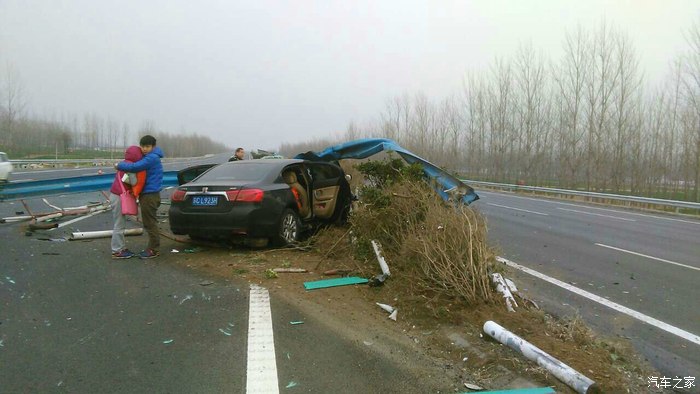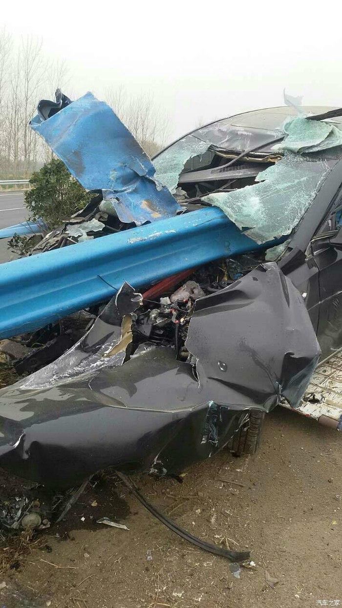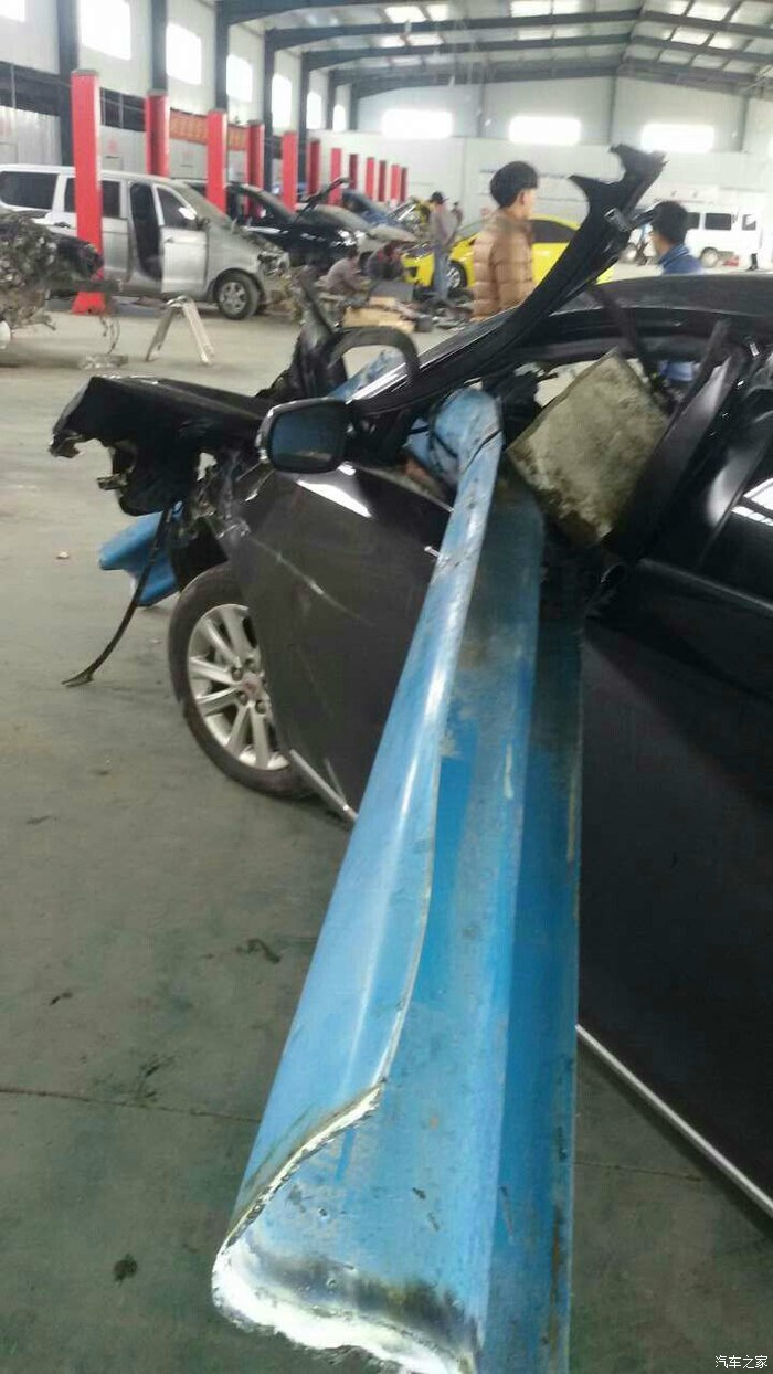 ,照片格式不一样,因为都是车上4个人各自照的。劈开防护栏的A柱是什么样的硬度?居然没绞断?甚至还没变形。如果A柱断了我是凶多吉少。