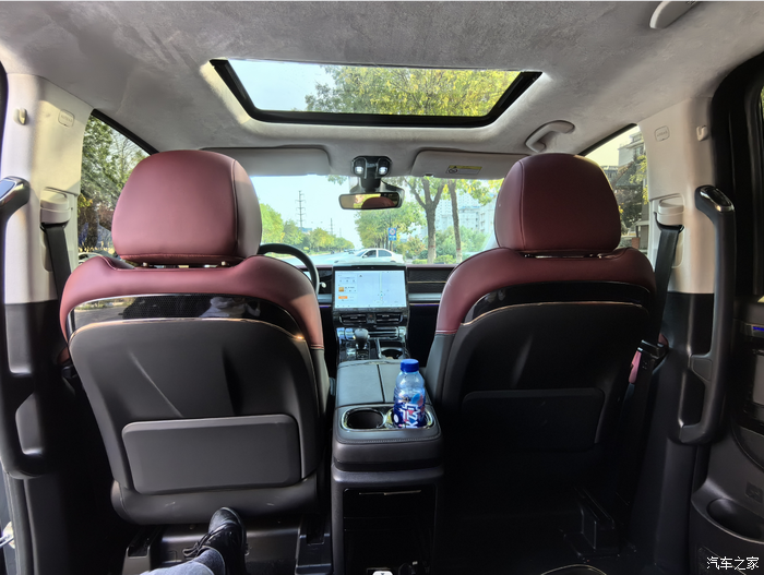 传祺E9 的车内空间还是比较宽大的,前排驾驶位,我坐直后,头部还有一拳左右的距离,副驾驶我的老婆坐也刚好合适,腿部的活动空间也比较充足。