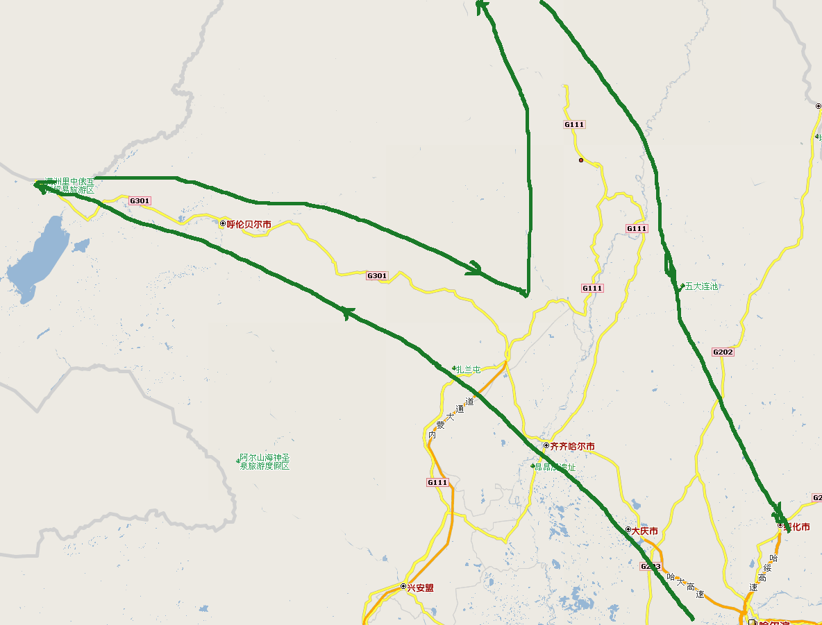 行程:白山==>双城==>绥化==>齐齐哈尔==>满州里==>海拉尔==>漠河,北极村==>加格答齐==>长春...