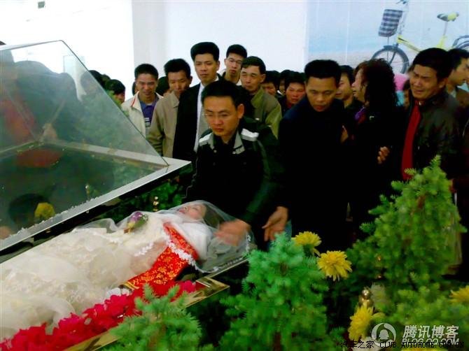 冰棺里她紧闭双眼,穿着雪白的婚纱,这是他为她买的。“她原先挑的是红色的婚宴礼服,家里人说,送她上路穿红的不吉利,我就特地为他买了白色的婚纱。”