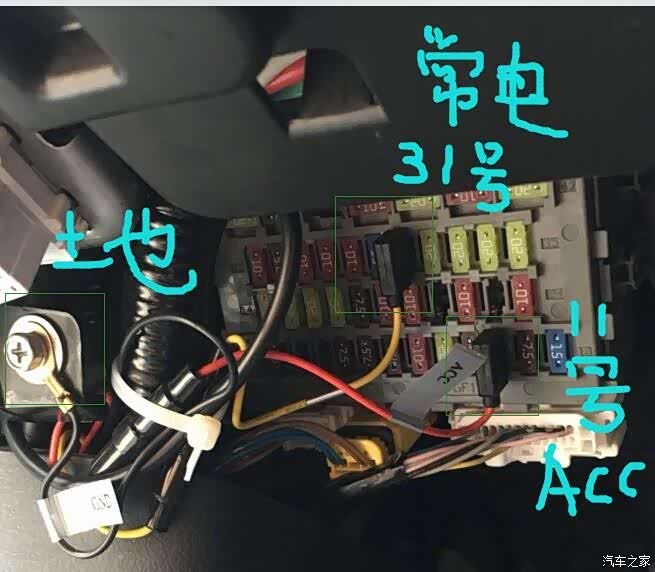 需要安装行车记录仪保险盒车主9.0 9.5代 车主,两个线是带电池的记录仪,红色安11号取电,黑丝地线左侧螺丝搭铁, 三根线是隐蔽式记录仪的,多一根黄线(常电)取电31号口, 罗少专用图片,切勿版本转载