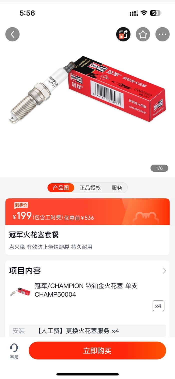 有老铁用过途虎上推荐的CHAMP50004火花塞吗