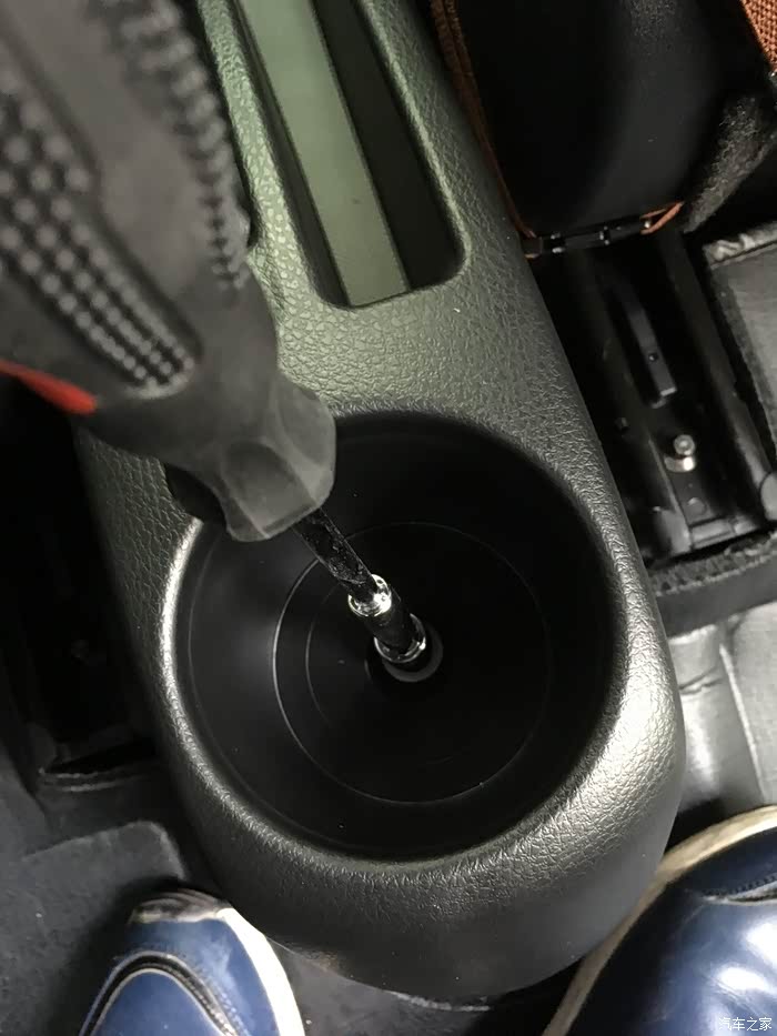 装完后,我就懵了,我说哪里拧螺丝,致享的原装扶手箱总共有5个螺丝,这个难道一个都不需要?这不科学。看了好久我才找到原来是在这个地方,需要拧一个6角螺丝。