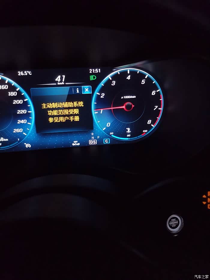 奔驰GLC260l动感型,主动制动辅助系统功能范围受限