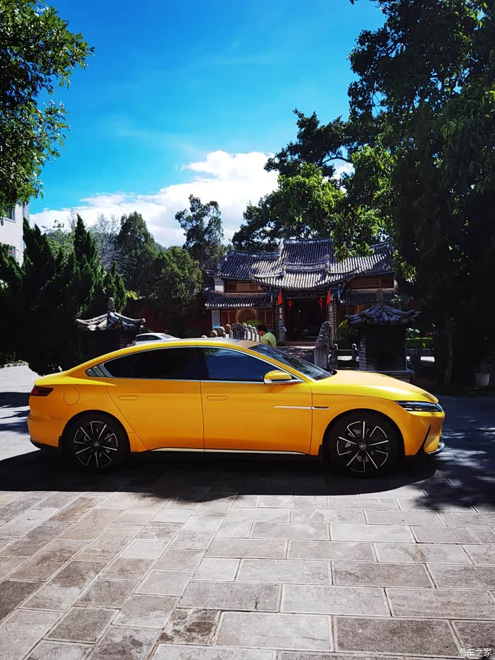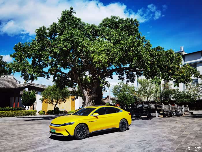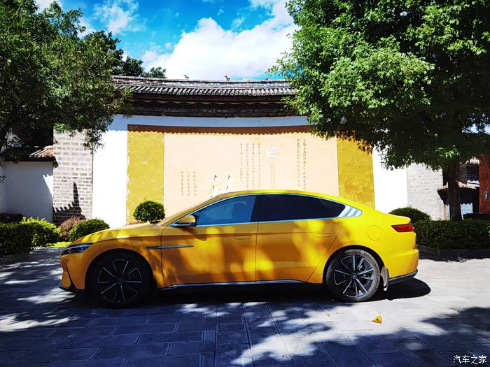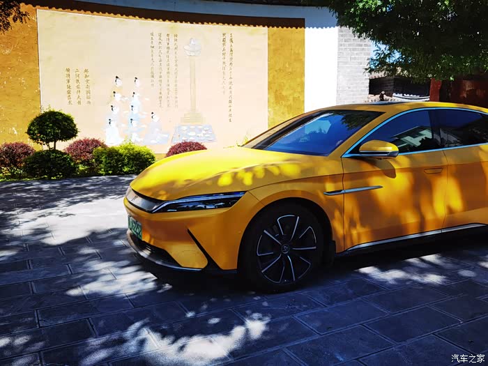 今天依然开的是邱老板的黄色汉EV,看惯了红色汉EV停在蓝天白云下,现在看来黄色的汉EV也非常漂亮。