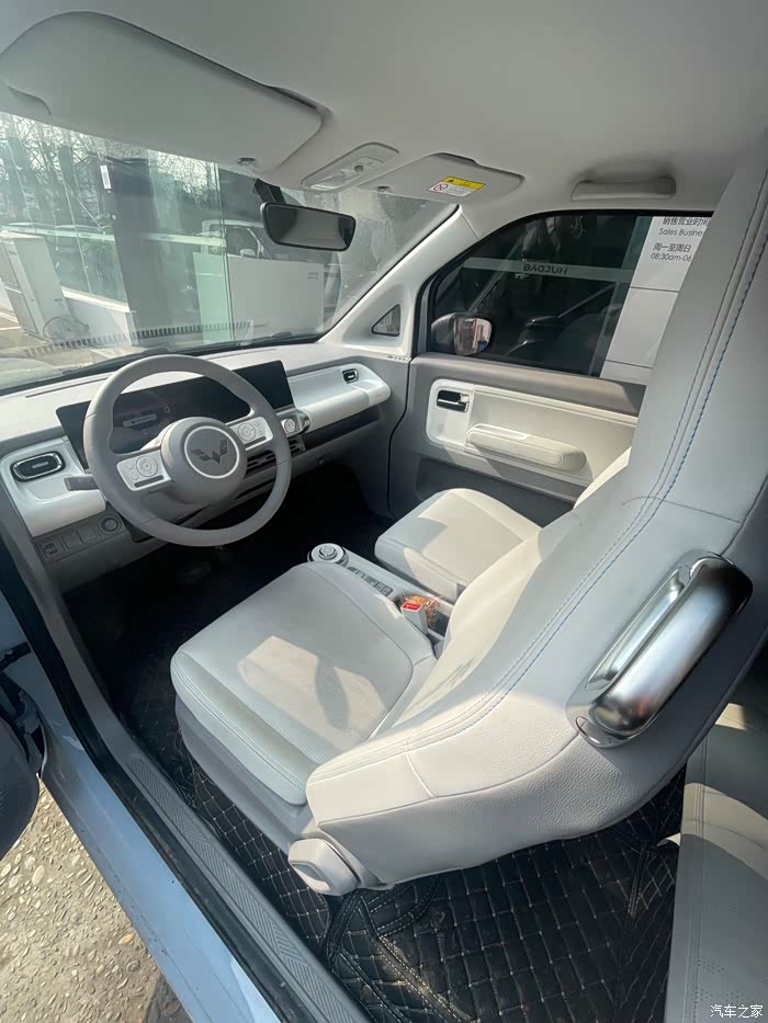 Air ev晴空的长宽高分别为2974/1505/1631mm,轴距为2010mm。新车的每项尺寸参数基本都比宏光MINIEV大一点点,座舱设计明显经过了细致化处理,也更契合它本身小巧的空间。它的中控台呈现出了S曲面结构,进阶版车型的仪表和显示屏都有着10.25英寸,并且形成了无缝衔接的双联屏结构3颗控制旋钮非常有点宏光MINIEV的风格,不过这大屏一加入,使Air ev晴空的内饰要高级的多了。新车车机系统采用了五菱自研的Ling OS灵犀系统。支持手机App远程车控功能,除了远程查看车辆的基础状态之外,还能够实现远程启动、蓝牙钥匙、空调控制、开关车门、升降车窗、预约充电等等功能。。