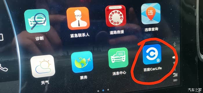 左右翻动显示屏找到我们需要用到的"百度CarLife+",打开它