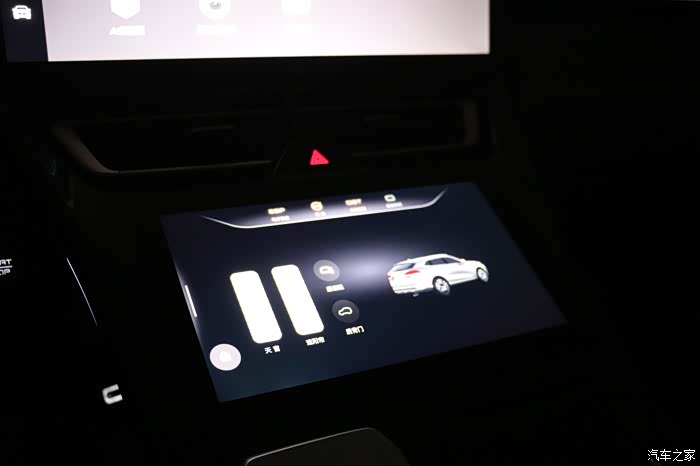 中控区域的辅助小屏,设计的比较个性,像天窗/遮阳帘,开到那个角度,点一下就OK了。