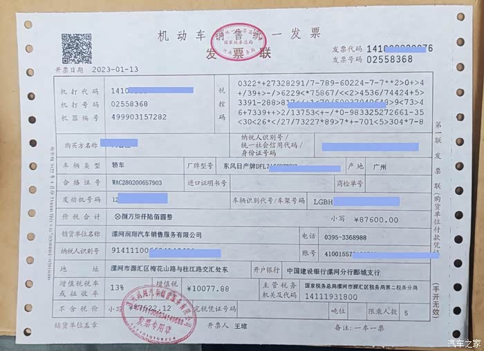 提车的过程还算很顺利,不过当时是1月份,天气有点冷,当时还下了点小雨,只做了简单的交接。付完首款和保险,4s店的人员带我当天就去上牌了,当时人不是太多,车管所的服务点离的也很近,一个路口的距离。整体也就大半天的时间,新车钥匙已经到我手里了,还送了一个备用的机械钥匙。我检查下车辆的铭牌,看了下车身外观,里程等,都是新的。最后确定都没问题,我才缓缓的驶出4s店。