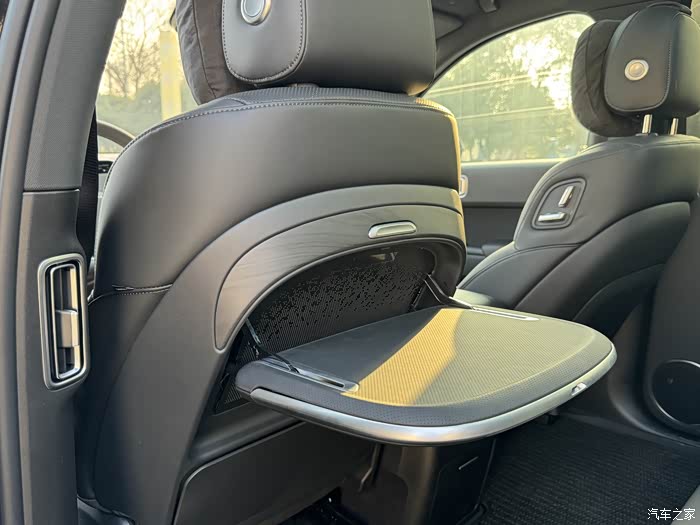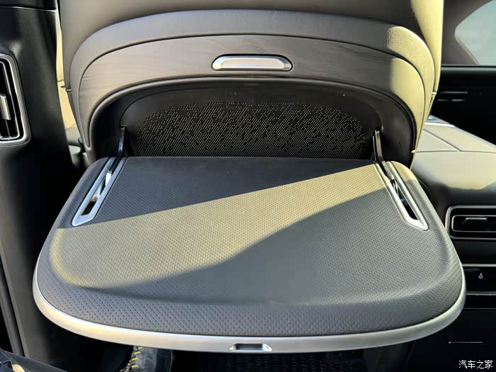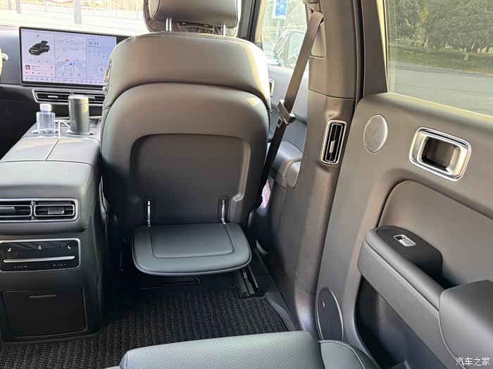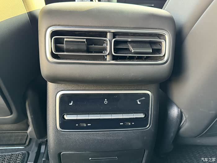 后排空调液晶面板,带座椅加热和通风按摩,下面是储物盒,没有冰箱