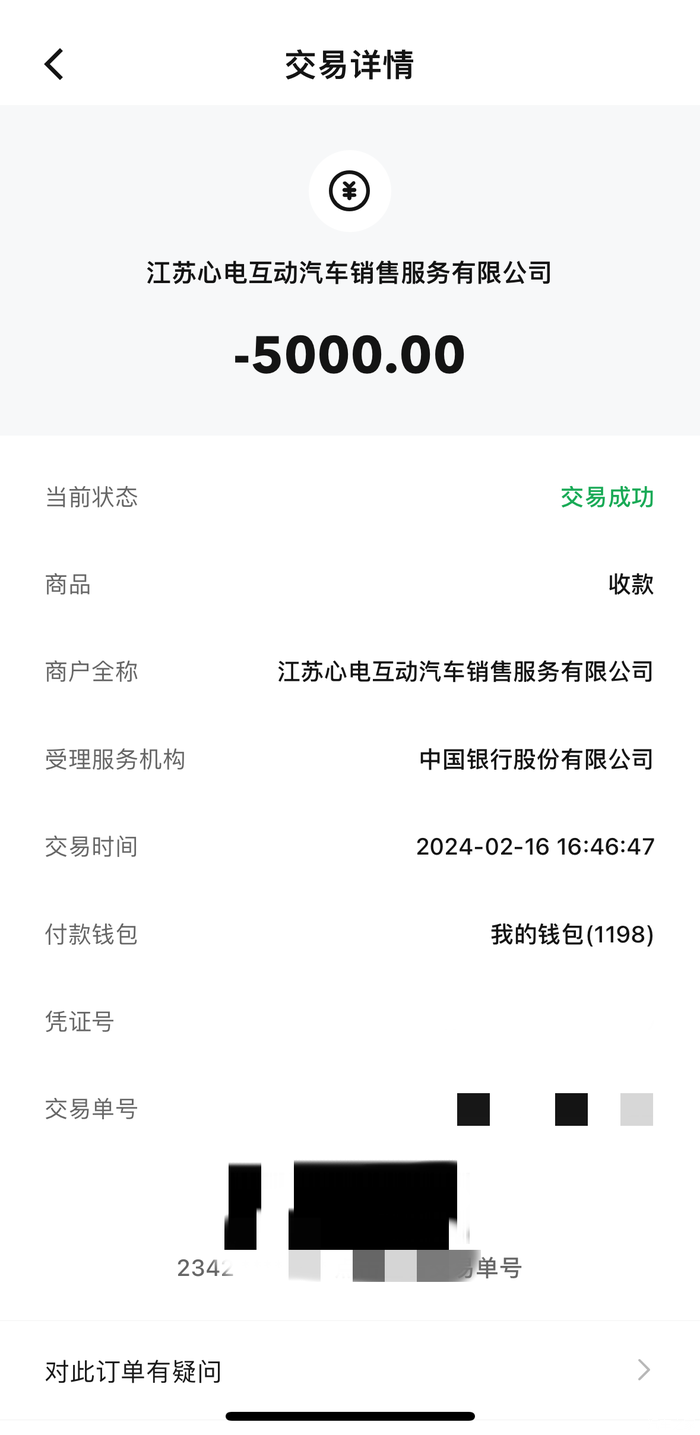 交了五千的定金