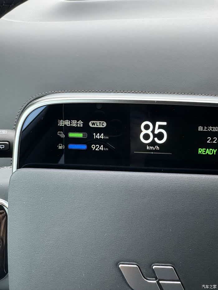 油箱加满显示续航924公里,实际的话大概750左右,纯电续航目前是180。