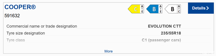 原车是固铂CTT,SUV胎,传祺M6Pro,一台不大不小的MPV,里程5.7万公里。原车配的胎,在欧标中属于CBB级别,找了个最接近的规格参考