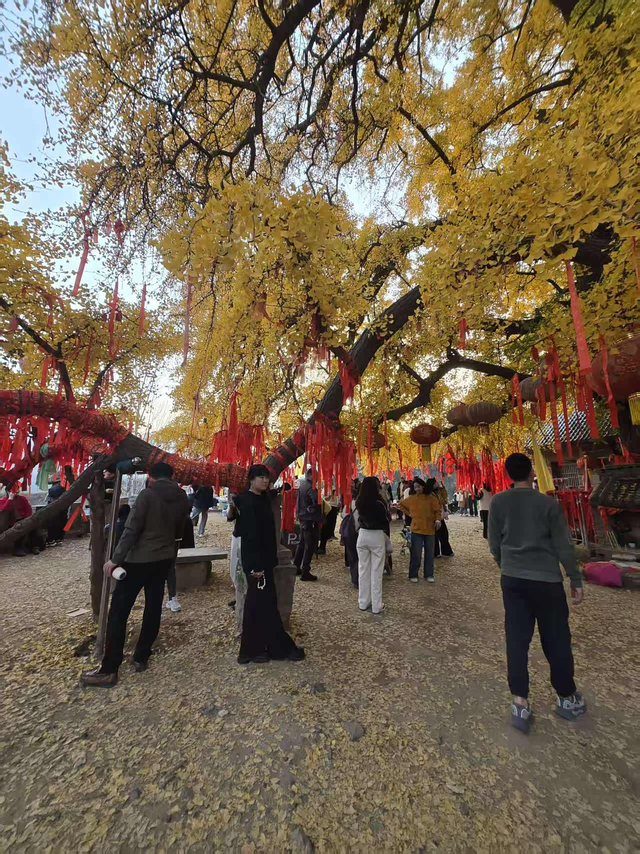 到傍晚我们才到达目的地,哇真的是人山人海啊,这里的银杏树黄的心里美滋滋的,还可以上香祈福。