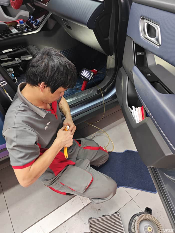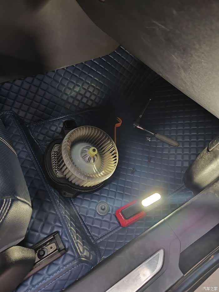 把空调的风扇拆下来。这一点很好,很多汽修店都不愿意这样操作。