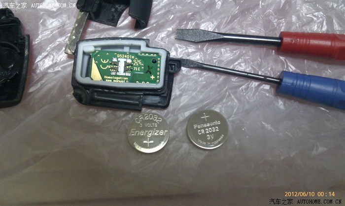 大家仔细看电池。左边的是我买的劲量,易买得,3块2一个,我在修表的地方问,国产的劲量30一个,进口的松下48一个。日,我这个劲量还是MADE IN INDONESIA呢。右边松下是原车的,也是印度尼西亚的。