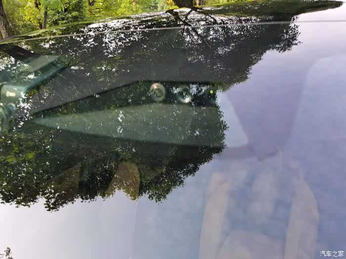 先看车头,在车牌上方一个摄像头,主要实现用来在车内或者APP调用查看车前方情况。车前挡风玻璃上方正中央有三个摄像头,主要是实现智能辅助驾驶、NGP、道路标识识别等等功能。