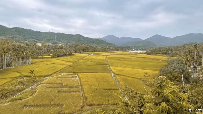 开了一段,把车停靠在路边。登高望远、群山环绕、郁郁葱葱,海南的冬天依旧是阳光明媚、绿树成荫。