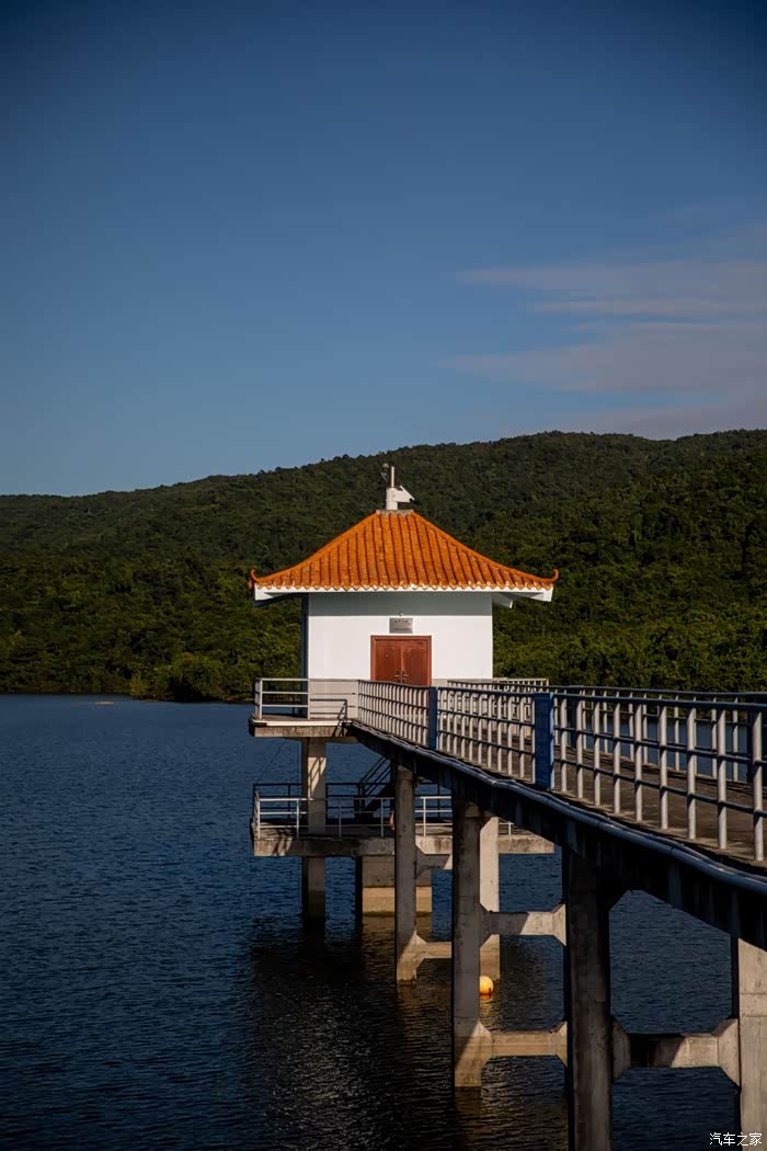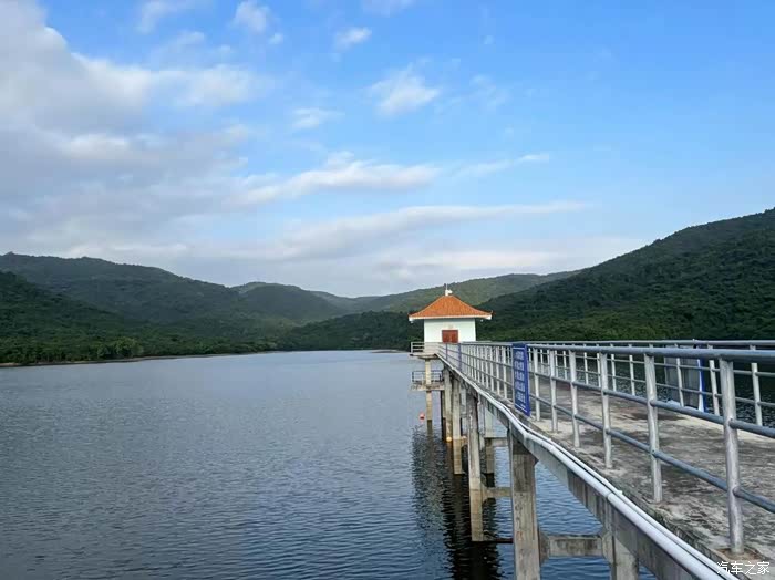 从远处眺望,我这幻彩望舒蓝的车漆和水库周围的风景是真心搭配,尤其是在蓝天白云的映照下相得益彰。