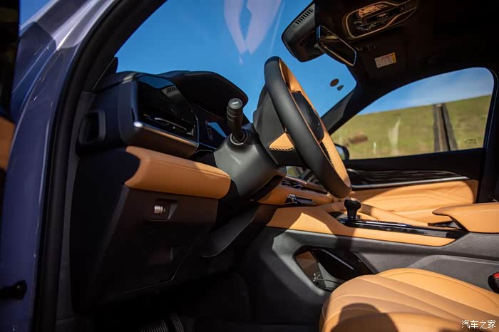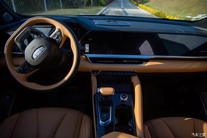 如果说外观上,星越L增程电动版给我更多是简约大气的感觉,那么坐进车内,我则能感受到它的豪华气息。特别是棕黑的配色加上全液晶仪表和双屏的设计,有属于吉利自己的一份独特。